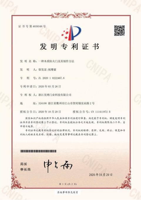 公司一直以來嚴(yán)格執(zhí)行ISO9001質(zhì)量體系和ISO14001環(huán)境管理體系標(biāo)準(zhǔn),建立了完備的科研、開發(fā)、生產(chǎn)、銷售服務(wù)體系。公司是浙江省門業(yè)協(xié)會(huì)會(huì)員單位,江山門業(yè)協(xié)會(huì)理事單位,中國(guó)木材與木制品流通協(xié)會(huì)會(huì)員單位,江山市消防協(xié)會(huì)副會(huì)長(zhǎng)單位。